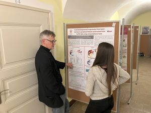 Briefly, first day, Dr. Magdaléna Krulová and Dr. Jan Dobeš opened the conference by greeting the participants and delivering a short talk about the aims and scopes. In the morning session, Prof. Matteo Iannacone gave a speech about studying the immune surveillance in the liver with focus on adaptive immune responses during host-virus interactions using intravital microscopy. The program continued by presentations from PhD students and lunch break. In the afternoon session, Dr. Anetta Härtlova presented her lab’s research on the role of endolysosomal pathways in inflammation and infection in the context of ageing and age-related pathologies, followed by presentations from PhD students and poster session outside. The dinner was traditionally held in a pub U Krobiana, about 1 km away. The highlight of the evening was the Ultrapunk concert, which got the whole hall dancing and showed how PhD students can have fun.